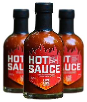 A secret blend of three premium chilies; Chipotle, Arbol and Cayenne, aged in bourbon barrels, which previously contained Ember Craft 7yr Bourbon, our hand-harvested Maple Syrup and craft beer from Beer City USA. The result is a hot pepper sauce that delivers layers of unparalleled taste – maple, hops, garlic, wood and spice all in one bottle.