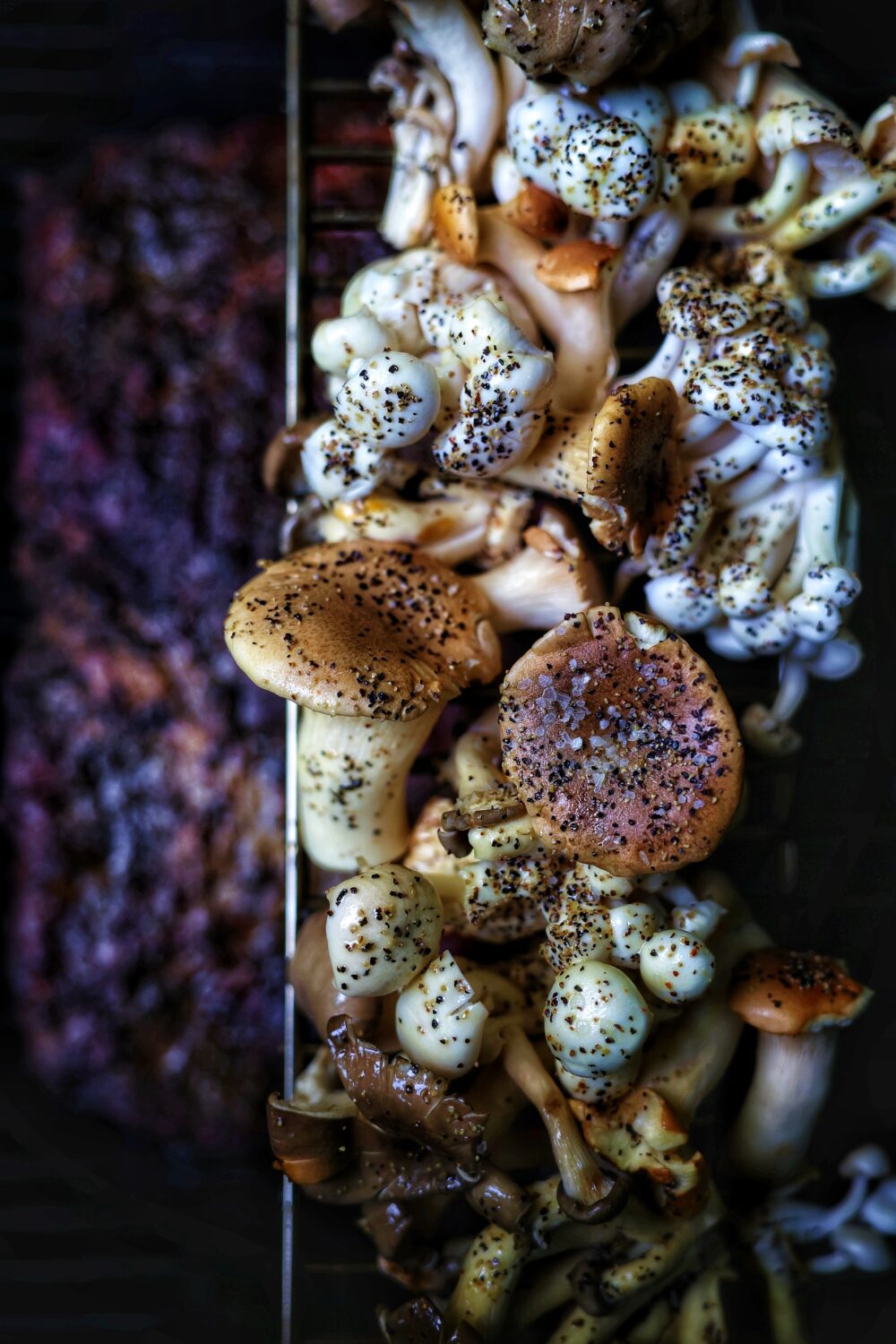- Chile Pepper Rub – My favorite combo is paprika, chipotle, ancho, dried orange peel, oregano, and salt pulverized in a coffee grinder. This has a gorgeous well-rounded flavor and results in a nice colored bark.